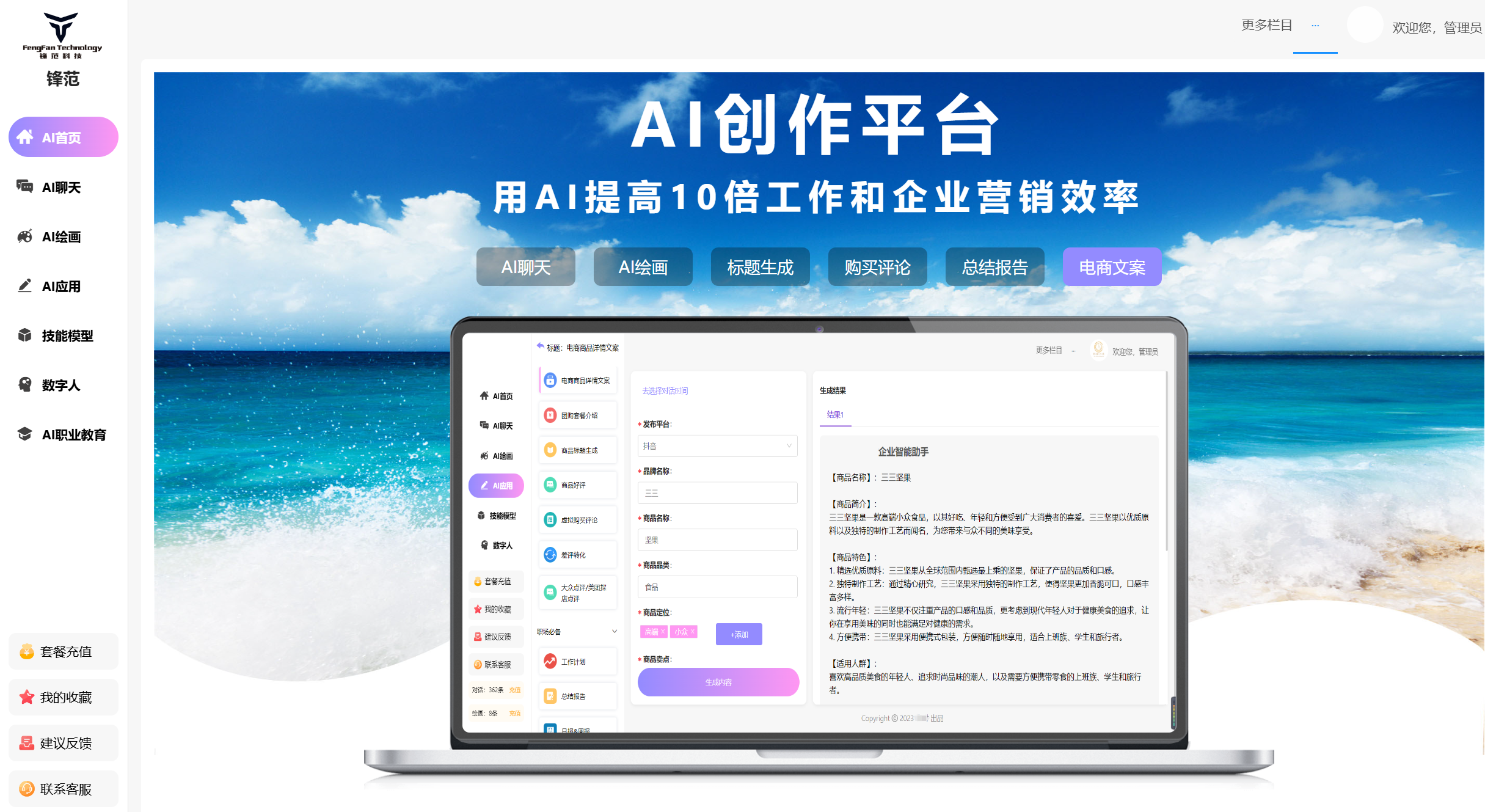 商業(yè)化企業(yè)智能應(yīng)用平臺(tái),支持內(nèi)容生成、圖片生成總結(jié)、摘要、翻譯、智能問答等多個(gè)AIGC場景,幫助企業(yè)實(shí)現(xiàn)降本增效目標(biāo),助力企業(yè)走向智能化的未來!